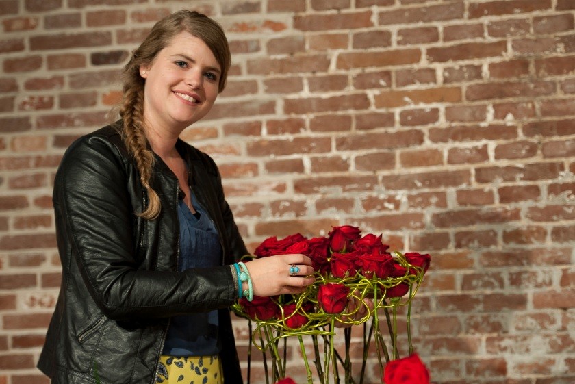 The design which Hanneke described as fitting for any occasion where love takes center stage took her about 20 minutes to create. Its frame was made of flash wire from Smithers Oasis.